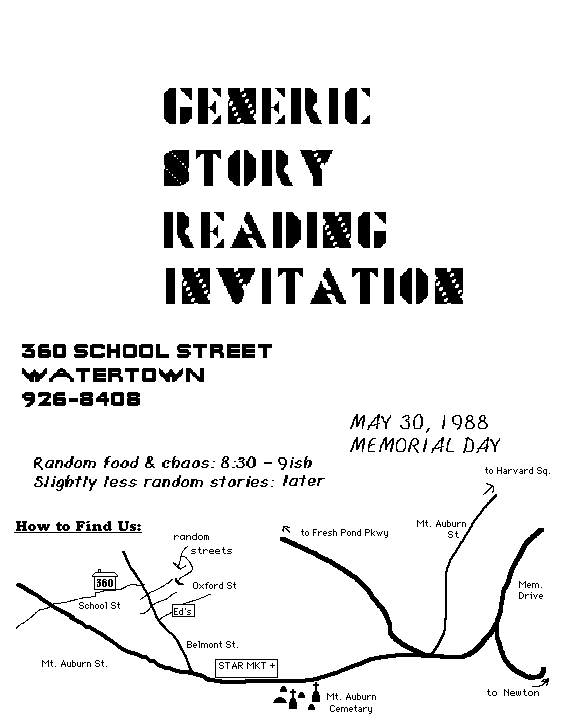 The Boston Story-Reading group is still meeting on Monday nights and