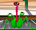 You can pick up the ball with the mouse, and hold it above him, and he sticks