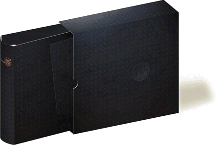 The core element in the recruitment package. This rendering of the proposed packaging features a textured black anodized aluminum construction, acid etched mark on sides, and silkscreened color mark and IBM logo on binder spine and case back.