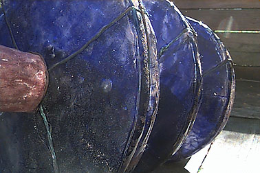The sand cast glass was colored with cobalt carbonate powder as it was poured in to the sand molds.