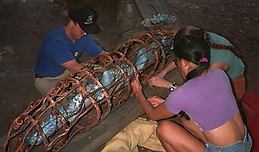 I designed the sculpture in two pieces since it is very heavy, big and flexible. The pieces have to be combined on location, and it is neccesary to weave the copper wires together to hide the junciton.