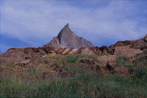 Turf house roof. An anchor chain has been put to new use.