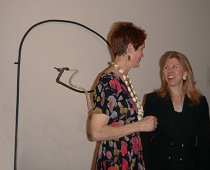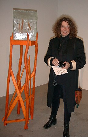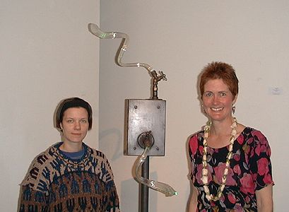 Kristin Gudjonsdottir mixed media sculptor and Mary White by one of Mary's light sculptures.