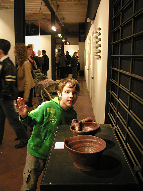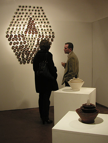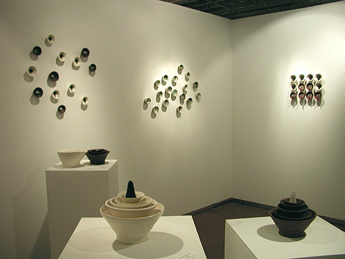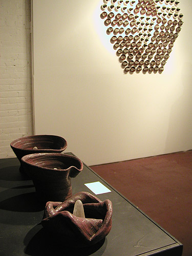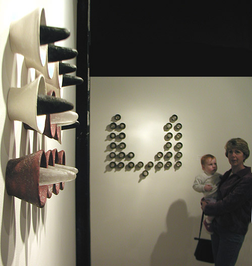 Prevail is the wallwork. The red sculpture is Negative and the white one is Hopeful.