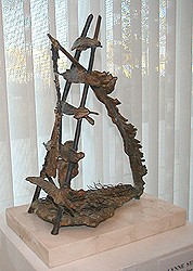 Bronze on steel stands