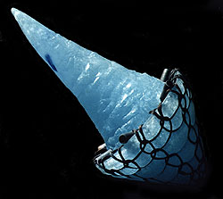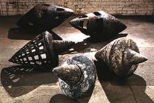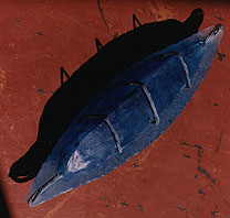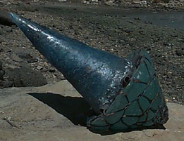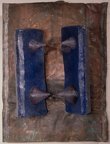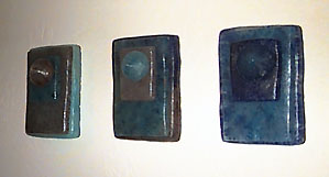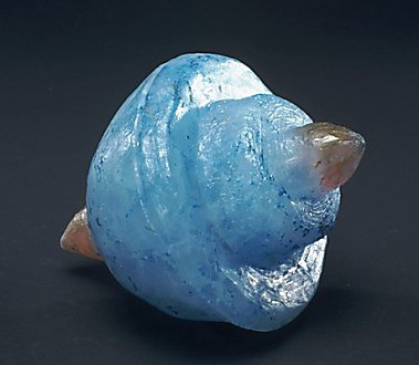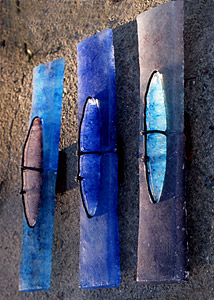 Clay cast glass slumped with copper wire. Stand is out of steel