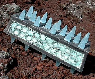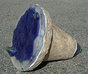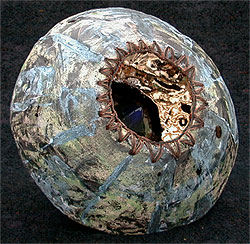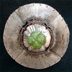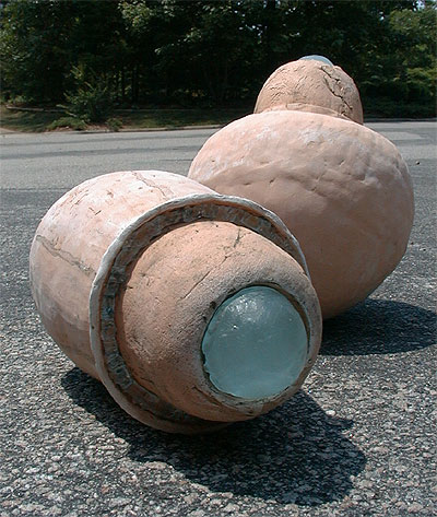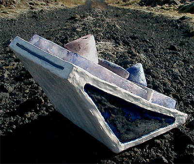 clay cast glass, ceramic, beach found mild steel (fired with clay part) and a little piece of copper wire