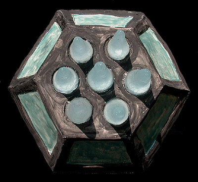 The orginal idea for this piece came from an old plastic float that I saw in a potters collection. The owner obviously likes them too for there was a whole wall display of them but then the rest of his house was covered with pottery.