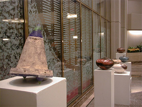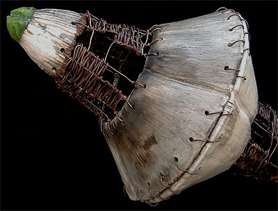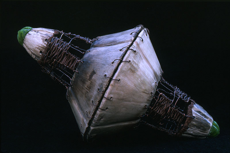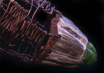 smoke fired ceramic, clay cast glass and copper wire