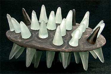 Ceramic, clay cast glass and forged mild steel