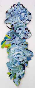 These pieces are made of acrylic on canvas with some paper collaged onto the canvas. The is cut and stitched and glued with acrylic medium.