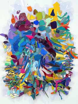 Acrylic on paper collage on Polyester, 21.25 x 18.5”, 54 x 47 cm.