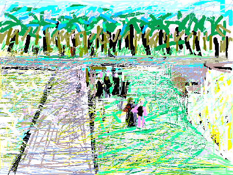 The bus continues. My eyes are wide open doorways. The land is beautiful. I like nothing they did to it but I can see so easily how well they have irrigated it with US tax dollars. Some of them are my own. Ah the contradictory treacheries of privilege and advanced capitalism. I look with chagrin at those poor palm trees which populated my childhood drawings. I do not like how they trim them. They used to possess such gracious gestures.