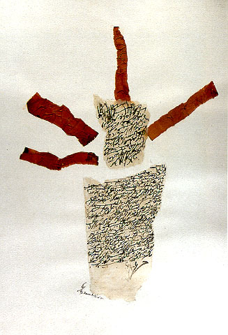 The urge to make art is extremely strong in Rana who wisely courts her creativity in a variety of ways. She divides her attention between conceptual and intuitive expression. This creates a division in her work which allows the parts to enrich each other. Her conceptual works have a formal beauty which grows out of her intuitive work. In her intuitive work she explores with abandon feeling the excitement of throwing concepts to the wind. At times she begins from an object in reality which catches her attention. She draws and redraws it until she arrives at the essence of why it caught her eye. The process is a search for the general in a particular object. She still has in her studio a small branch which she found in Switzerland.