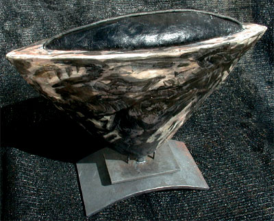 Clay cast glass slumped with copper wire. Stand is out of steel