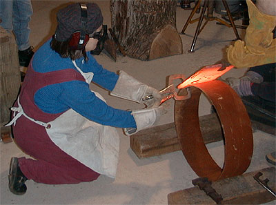 Sand cast glass with copper tubes and metal rods sticking out of sand cast glass.