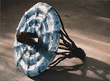 Two Ring Form is in the front, and by the window are Dish Form (see back) and a piece from the cone series; Light Blue Pointed Form and Dark Blue Pointed Form.