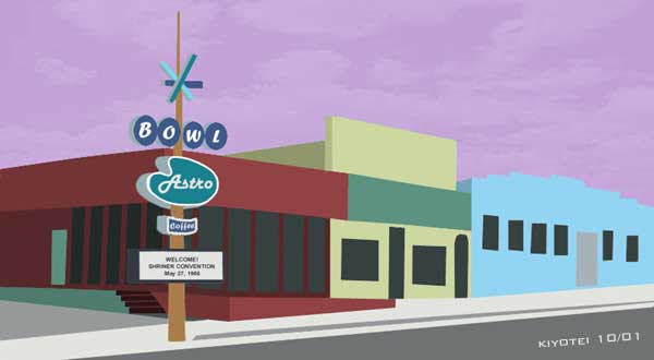 This design is based on 2 digital photos that I took of some retro-looking stores in Oceanside, California.