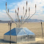 The PAliens are sculptures with speakers embedded; they listen to their environment, reprocess the sound and use that as their voices. Heavens Speak is an immersive sound installation with surround sound; constellations speak their myths to you from the right place in the sky. Haunted Garden is a pure sound environment that sings harmony with the room. (though it has lights now too!). Voice of Fire: the fire speaks to you. The Oracle answers your questions over the phone, and then broadcasts them to the world.