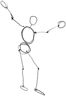 The exterior contour-center-lines on the front of the body and the spine will show shifting direction in accordance with the bends and twists between pelvis and ribcage.3:
