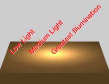 A lamp will illuminate most strongly on a surface closest to it.