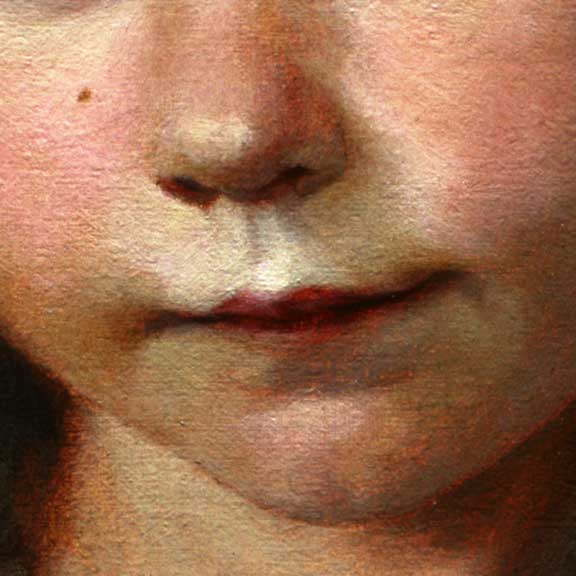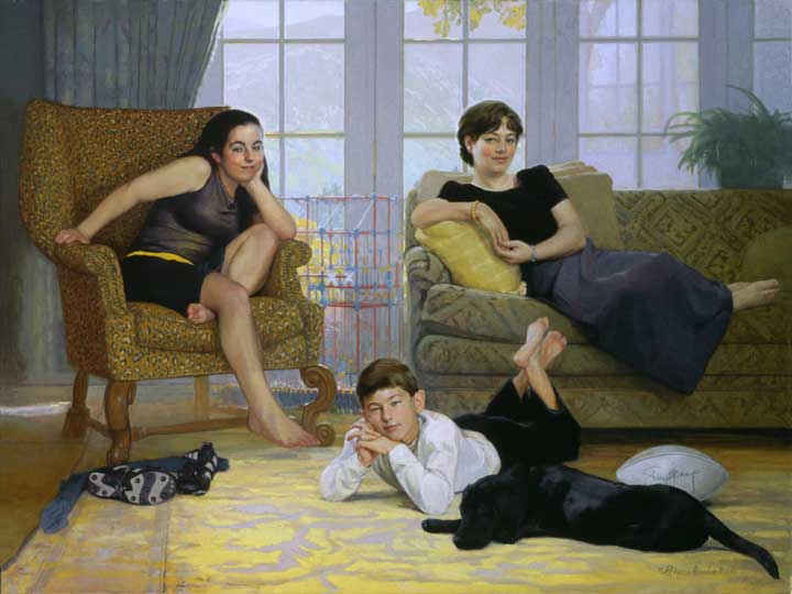 Indicating the shoulder of the girl on the left in The Simons Children,