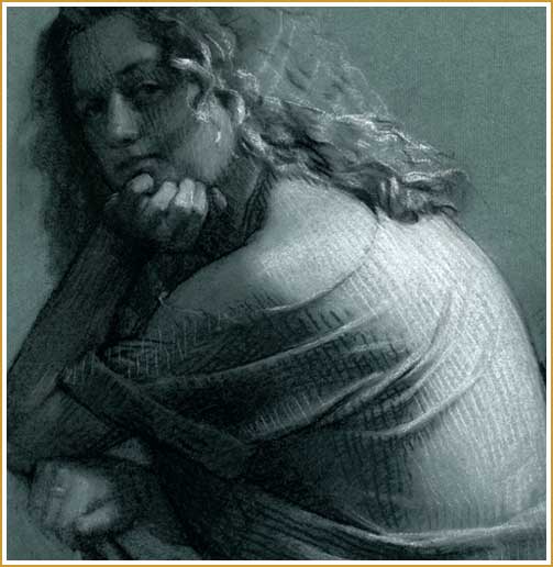 BLACK AND WHITE CHALK ON BLUE PAPER