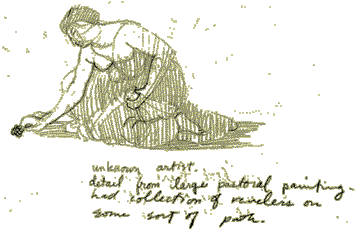 rough wet, dragged brush stroke at edge. Ran the direction of edge.