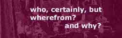 else to search. I am so curious! Who, certainly, but what, and wherefrom?