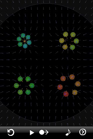 When the bodies collide, they make music. Each one is assigned a melody and an instrument and plays its next note at each collision.