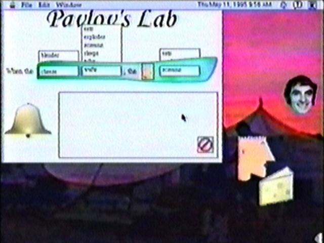This is Pavlov's lab here. This is a prototype, but it's going to be dynamically configured by the object that you drag into it. We can say, like, when the dude sleeps, screams, explodes, sleeps, talks, wafts, no, when the cheese wafts, the dude sleeps, explodes, screams, screams. Yeah, all right.