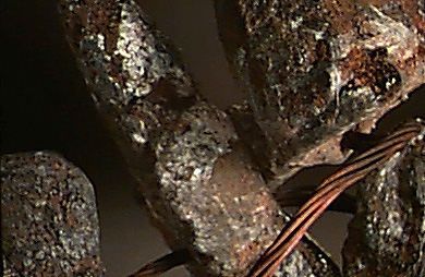 Cast in one piece. I had a tall wood box. Put some sand in the bottom. Made my first form. The cone shape. Stuck the end of the copper wire into the mold as soon as I had poored into the shape.Let it sit a little put sand over it. made another shape. made sure the copper wire was in the middle of that shape. Poored again. did the same thing again and again until the box was full to the top with sand and glass. As soon as the top piece was cool enauch I emptied the box and hurried with the glass to a kiln to get it anniealed.