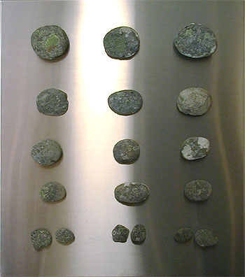 Hér sést hvernig steinarnir liggja á málmplötunni