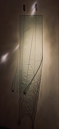 slumped plate glass, suspension caple - 42" h x 15" w x 15" deep