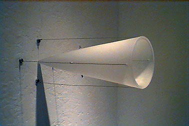 blown glass, tension cable - 24" deep x 6" diameter opening