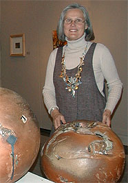 Throughout it's evolutionary process humankind has turned inner spiritual visions into narratives, customs, and artistic objects conceived and shaped by the knowledge and resources of the prevailing epoch. Through a deliberate selection of indigenous materials I am emphasizing the origin of all things. Yet, while archeological presence, form, firing and hand building technique give a timeless quality to my work, embedded machine parts speak of technological advances and the application of a spatial view captures a growing awareness of global/universal interconnectedness and responsibility.
