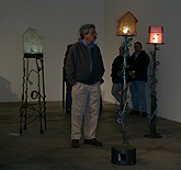 Kristin Gudjonsdottir mixed media sculptor and Mary White by one of Mary's light sculptures.