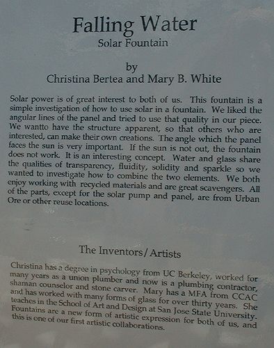 Recycled refrigerator glass, aluminum ladder, concrete, stones, tub and a water pump