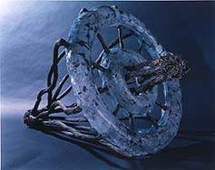 Clay cast glass. The little dark pieces on the back side are made separately in the hot shop.