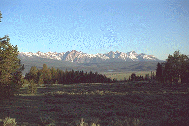 Looking North along the Sawtooth Range to the mountains along the River of No Return, Robb Brady's view from the top of his benchland is a vista of mountains, skies and plains. The ever-changing skies continuously change the appearance of the land, exciting the viewer and creating lasting interest.