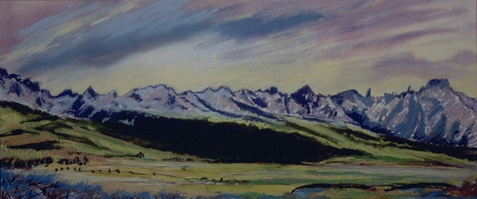 In the Sawtooth Valley the sun sets behind the mountains. Sometimes vermillion, sometimes golden, the mountains fade to purple, then to black. Many evenings I rushed to the top of Marilyn's benchland (our backyard) seeing the entire valley, viewing the whole Sawtooth range, enjoying the fullness of the day's end.