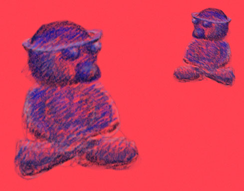 Boobie 2I drew some scribbles, then anthropomorphized them, added highlights. Then I changed the size of the picture and replayed the session (I didn't say I'd been recording it did I?) A bit of image flipping & there we have it.| Drawings | FEATUREBATION | Scrolls | Plein Air | About... |