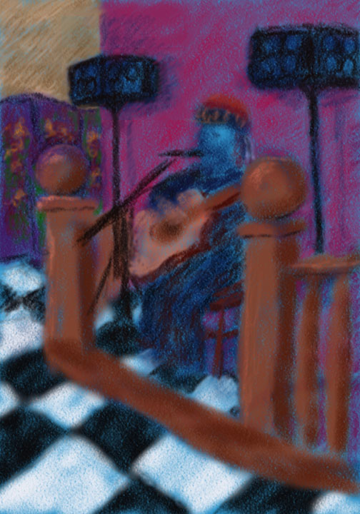 Digital Paintings: Plein Air Drawings by Simran Singh Gleason Sage At La Di Da Sage Gentle-Wing plays at LaDiDa cafe in Half Moon Bay, CA. January 15, 1995. | Drawings | Featurebation | Scrolls | PLEIN AIR | About... | Simran Singh Gleason