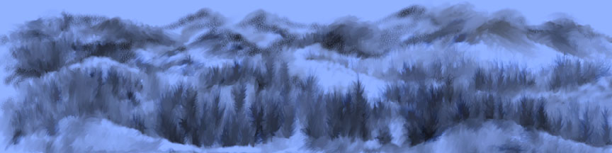 Scroll Landscape 1This is a long scroll painting (originally 6 by 24 inches, shown here a bit smaller) of a wintery landscape with fog. I drew this in Michigan when all the snow had just about melted. I guess I was hoping for a white christmas, but this picture was all the snow I managed to find.| Drawings | Featurebation | SCROLLS | Plein Air | About... |
