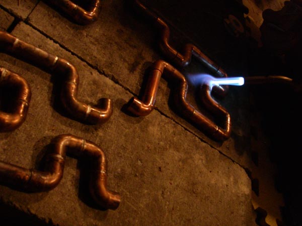 with copper pipe, doing