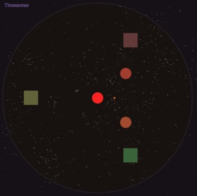 When the bodies collide, they make music. Each one is assigned a melody and an instrument and plays its next note at each collision.