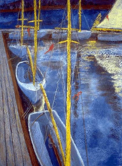 Masts and Wires: Shoreline ParkPastel on blue-toned paper.