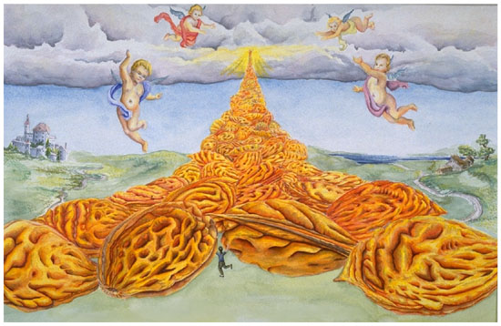 full sized image 319K Angelic Ecstasy watercolor and gouache 4 x 4.5 inches reproductions available |