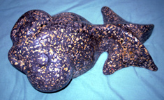 This cast sculpture, in the media tradition developed by Buffano, is inspired by the Celestial Bubble-Eyed Goldfish. There are four versions of this sculpture to date.