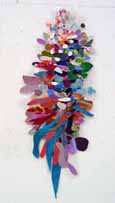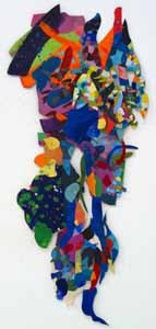 These pieces are made of acrylic on canvas with some paper collaged onto the canvas. The is cut and stitched and glued with acrylic medium.